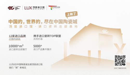 本屆展會,中國陶瓷城展館將迎來重磅“上新”!五樓將推出“頂層進口館”,總面積達1萬余平方米,薈聚CK·HOME、紛特石晶、DPI、費羅娜、麗適巖板、普斯麥、LEA、LUSSOVITA意奢家居等全球頂尖原裝進口瓷磚品牌,集中展示5000款進口產品,為大家帶來最新的進口產品設計趨勢及應用案例、進口品牌動態、行業趨勢數據等資訊。