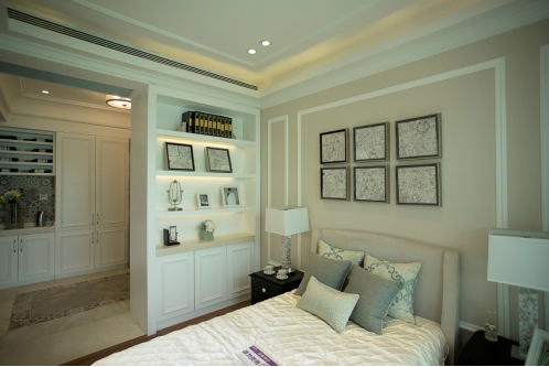 業(yè)主屬于成熟、享受生活的人。已有一位三歲小男孩,現正孕育著新成員!夫妻兩個比較喜歡看電影,旅行。喜歡寬敞、明亮、穩(wěn)重、有檔次。本案例在保證整體效果及舒適度的前提下,充分利用空間,設計了儲藏間、衣帽間、及衣柜,以充分滿足業(yè)主的儲物功能。在效果上使用了實木護墻板、墻紙、石材、木板、鏡子等材質,體現了美式的古典、雅致及尊貴美!